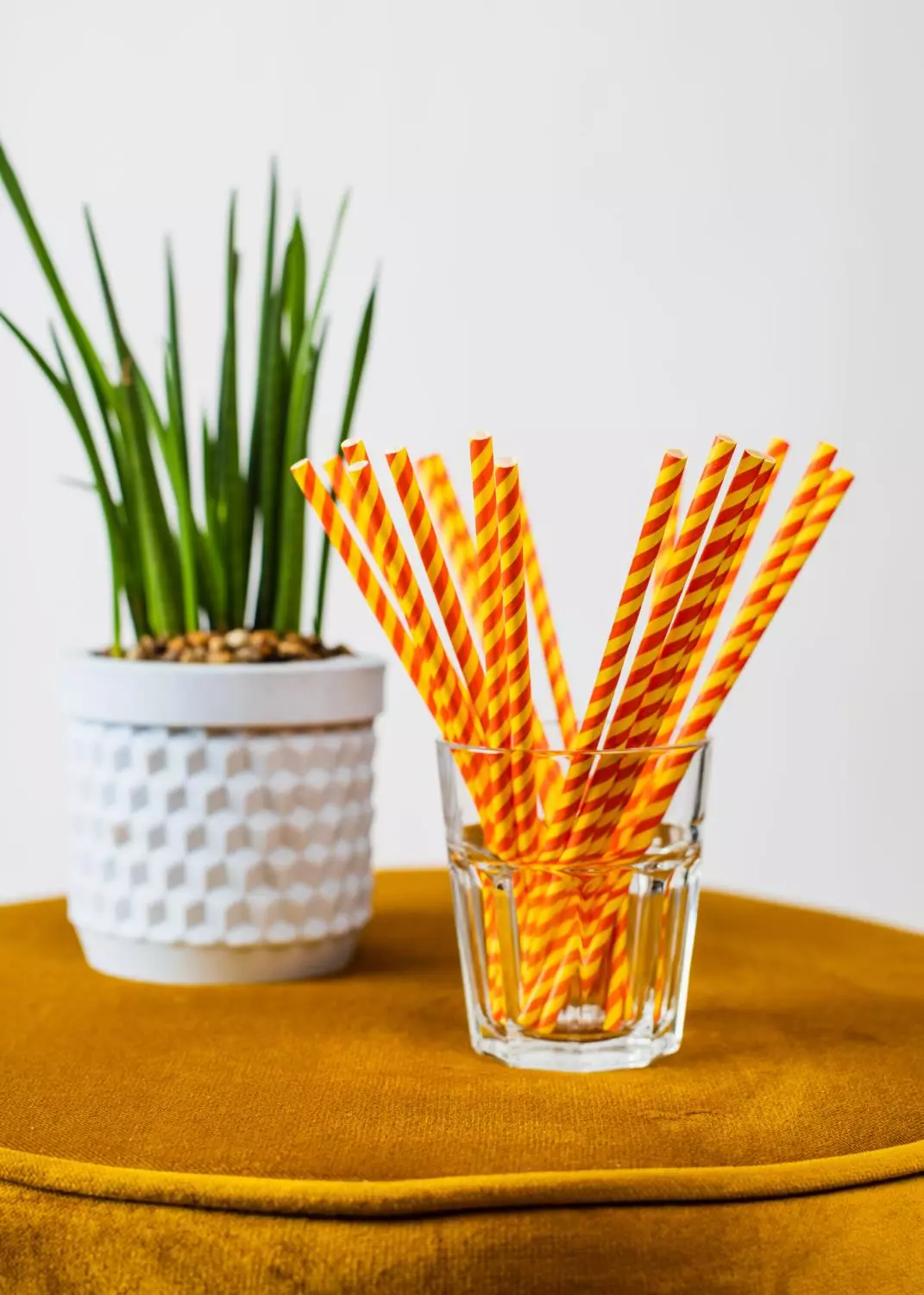 Papirsugerør gul/rødstripet 20 pk