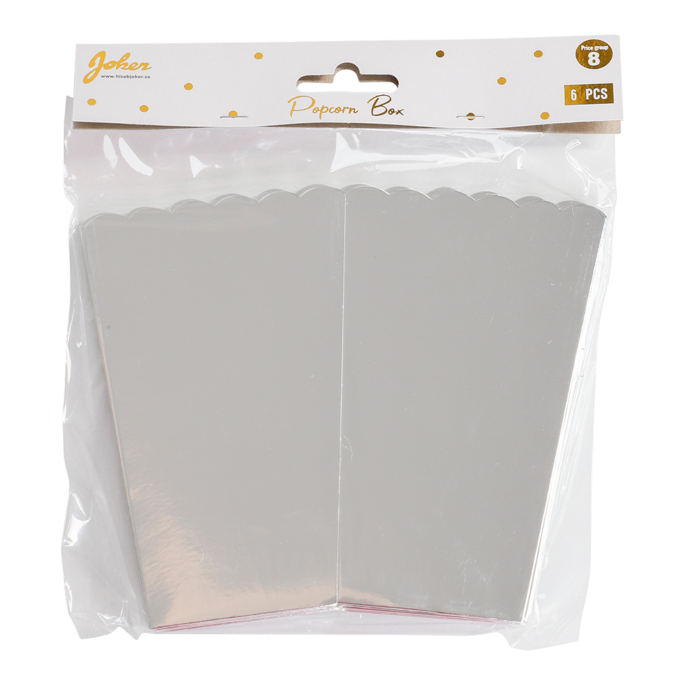 Popcornbeger i sølv 6 pk