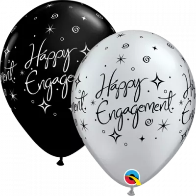 Happy engagement ballonger sort/sølv 6pk
