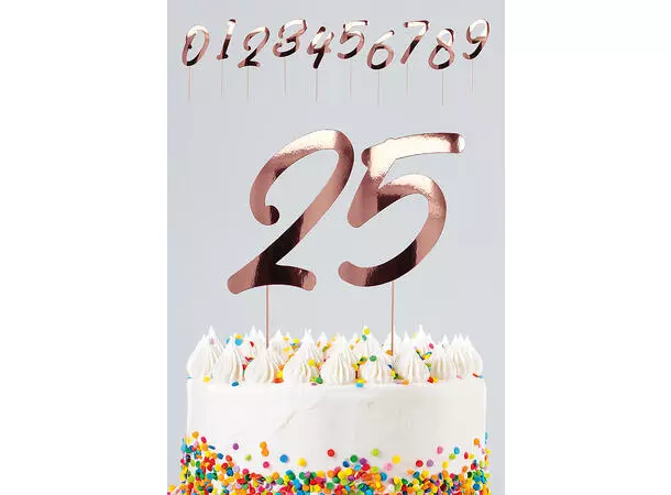 Kaketopp nummer på pinne rosegull