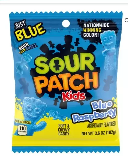 Sukker, invertsukker, glukosesirup, modifisert maisstivelse, inneholder mindre enn 2% av: sitronsyre, vinsyre, naturlig og kunstig smak, farger (E133, *E129, *E102). Inneholder en bioteknologisk produsert matingrediens.